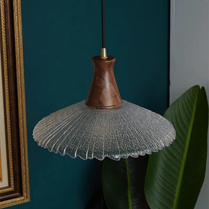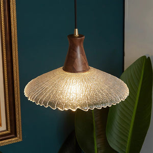 Light up your space with the Adara Classic Pendant Lamp. This retro-inspired lamp features a unique combination of solid wood and durable brass, creating a one-of-a-kind look. The leaf-shaped glass dome adds a touch of nature and whimsy to your decor. Shine on!