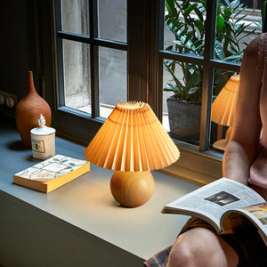 The pleated table lamp is stylish and attractive, made with high-quality lampshades, and has a transparent texture and strong light transmission. The traditional look adds a beautiful aura to the space while also providing a soothing environment. Under gentle light and soft light, you may read or play pleasantly. Copper is used in both the lamp holder and the lamp body to precisely blend the lamp body and solid wood. The pleated lampshade is simple to care for and clean, and the charming vintage pleated form is timeless and flexible.