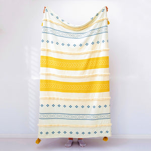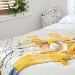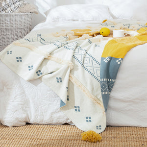 Our cotton tufted throw has been carefully woven and yarn-dyed for an extraordinarily soft hand-feel, making it the ultimate lightweight comfortable blanket. A twisted tassel fringe at four sides gives it a comfortable feel, and simple color-blocking gives it a modern look.