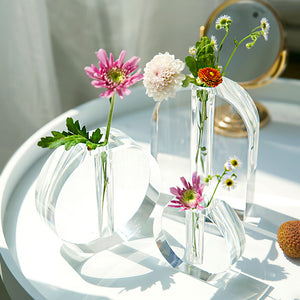 With this shaped vase, you can show off your personal flair. It adds a nice finishing touch to your property. You may use it as a flower vase or as a table decoration by adding colored pebbles and a candle. The glass vase gives a special touch!