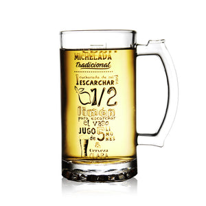 Michelada beer mug are lasered with permanently etched that won't fade, rub off, or peel, and is of the highest possible quality. It can holds 16 oz. of beer in style.