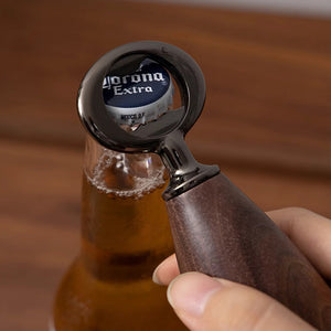 Timeless bottle opener with rustic rolled edges and a gleaming finish is part of our suite of sophisticated natural farmhouse home bar appointments.