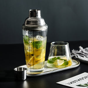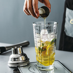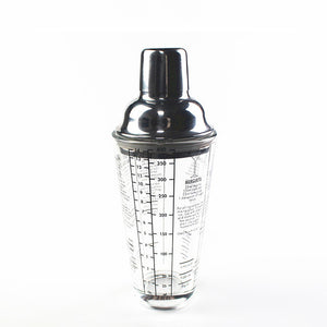 This Leshem Cocktail Shaker with printed recipe glass will look great in your bar or restaurant. This shaker includes a glass and a stainless steel shell that holds 14 oz. The stainless steel lid casing resists corrosion and protects against dents and scratches. On the side of the glass, 6 traditional cocktail recipes are written, as well as graduations offering measurements up to 14 oz. These parts are simple to clean and wipe down.