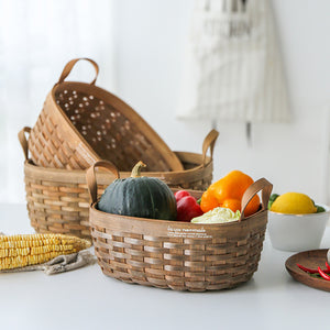 Artists hand braid and coil strands from fir woodchip, a highly sustainable Asian hand-woven carbonized chip storage basket. It's ideal for serving or putting together a tabletop display.