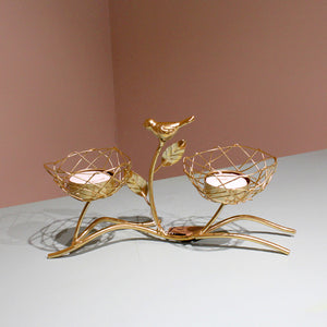 A lively composition is this rustic wrought iron candle holder. This multiple tiered nest candle holder cascades across the tabletop in a jumble of squiggles and curls. For a wild centerpiece, layer the double, single, and triple candle holders from the collection!