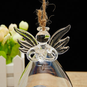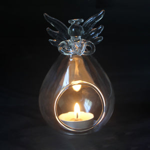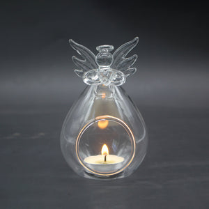 Sweet glass guardian Archangel figurine showing the blessing and prayer to your family. A candle stick holder could be hanged as planter or lighting a tealight like a vintage descending angel from above.