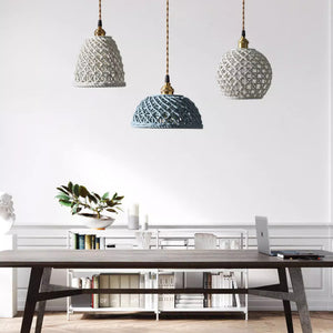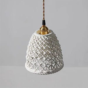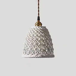 Illuminate your space with the Omanut Procelain Bell Pendant Lamp. Its bold rounded shapes and vivid knotting matrix create a distinctive visual experience. Hand casted in soft and earthy tones, the lamp's gently textured surface adds an elegant touch. Let it light up your home with sophistication and style.
