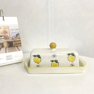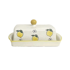 Add a touch of charm to your dining experience with the Etrog Ceramic Butter Dish. Hand-painted with a citrus design, this dish will not only keep your butter fresh, but also serve as a lovely home accent. The easy-to-lift round knob makes it a practical and beautiful addition to any table setting.