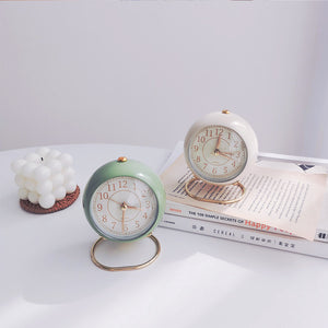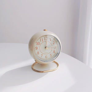 The clock's display with hours as Arabic numeral and dots for minutes and seconds. It is a simple and modern clock, easily to suit your bedroom, study table, vintage table cloth and study room. Its simple design is able to allow you to decorate your interior design of Nordic, Bohemian and minimalist. It is an overall analog alarm clock while a modern way of design to design your rooms.