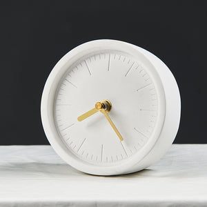 This is a full body of color round cement clock. It is a speaking of art of natural in interior designing of Modern Nordic Minimalism. It is suitable to place in any study room of this modern era. It is very details item with less pores and smooth surface. Its round and minute, hour lines is an item that is demonstrating your art sense. Its simple and beauty are able to allow you feel the relaxing and stunning in the room. Its mechanical clockwork and the golden wrought iron pointer allows you to enjoy it to be the best simple clock ever in your office, studio or rooms.