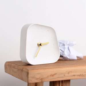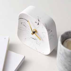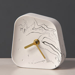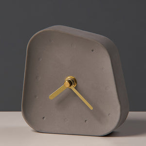 This is a full body of color cement clock. Its shape speak of the Terra (earth) type of material, talking about the environment friendly. It is a speaking of art of natural in interior designing of Modern Nordic Minimalism. It is suitable to place in any study room of this modern era. It is very details item with less pores and smooth surface. Its irregular shape is an item that is demonstrating your art sense. Its simple and beauty are able to allow you feel the relaxing and stunning in the room. Its mechanical clockwork and the golden wrought iron pointer allows you to enjoy it to be the best simple clock ever in your office, studio or rooms.