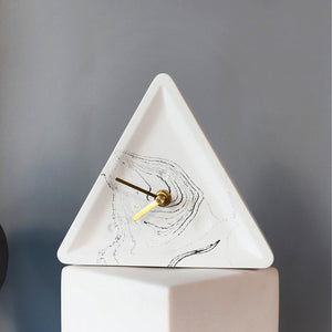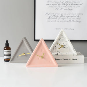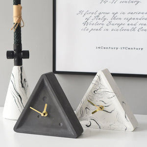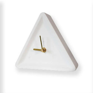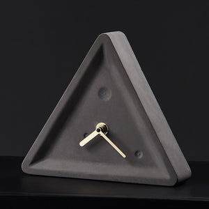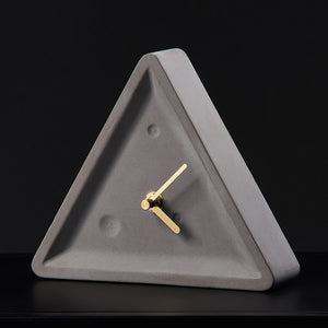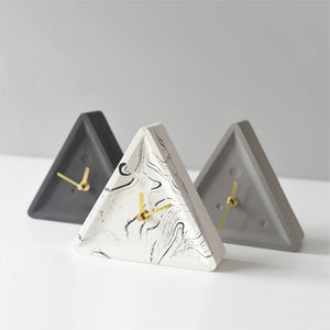 This is a full body of color triangle cement clock. It is a speaking of art of natural in interior designing of Modern Nordic Minimalism. It is suitable to place in any study room of this modern era. It is very details item with less pores and smooth surface. Its triangular shape is an item that is demonstrating your art sense. Its simple and beauty are able to allow you feel the relaxing and stunning in the room. Its mechanical clockwork and the golden wrought iron pointer allows you to enjoy it to be the best simple clock ever in your office, studio or rooms.