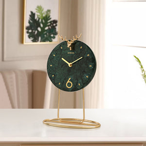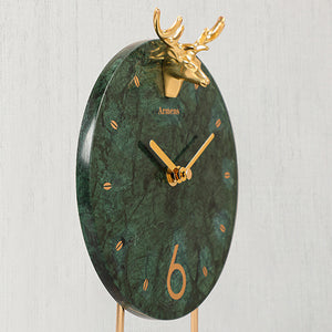 This is a Nordic European style of stand clock with the clock body of marble and the bronze circle base. It only display the large number of six and elk horn as twelve while others are the interesting Nordic style of pattern lines. Its luxury design allows it to be one of the best collection to decorate your house and your Nordic style. It is to decorate and upgrade your rooms to a higher level of Nordic style.