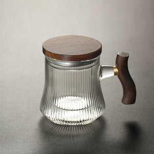 Simply put your favorite tea leaves in the infuser, pour boiling water over them, and wait until the desired strength is achieved. There's no mess and no need to remove the strainer when you click the plunger to stop the brewing and start enjoying a fresh cup of tea. This teapot has a wood lid and is made of heat-resistant glass with a glass infuser.