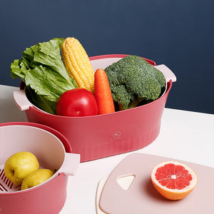 It’s easy to wash the vegetables and fruits. I have it with draining the spaghetti. No doubt, good product. Rarely to see a unique shape like this, especially a red one.