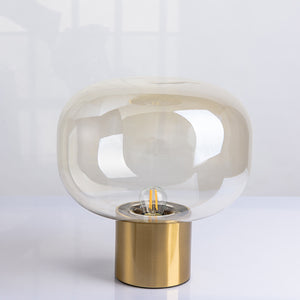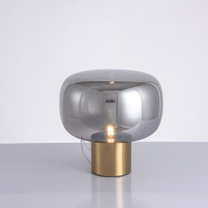 The plated metal base is subsequently hand brushed providing the perfect meeting with a transparent & smoked glass lampshade. A beautiful lamp which is perfect on the desk, coffee table or bedside table.
