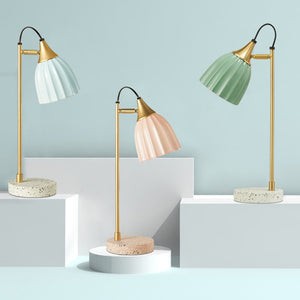 The Rayxin dome table lamp is a British design classic, featuring translucent bone ceramic lampshades. This movable ceramic table lamp has a changeable shade and a stylish cotton braided flex, all supported by a metal frame painted in satin or brushed brass.