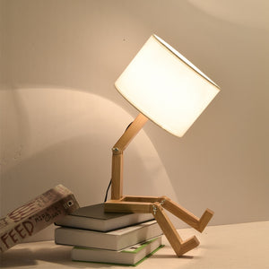 Bott table lamp is a creative, minimalist wooden robot shape goes way beyond your average adjustable lamp, with a jointed stem and two bendable legs. It is like an adorable hybrid of a lamp and Pinocchio.