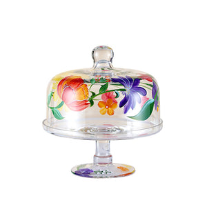 Our glass cake stand is generously enough to raise and accommodate larger cakes or tortes for a magnificent dessert display. Freshness is preserved by the fitted dome, which is topped by a functional knob handle for simple lifting. Our domed and footed cake stand is a exclusive, blown, molded, and Corak finished by hand by a team of skilled glassblowers.