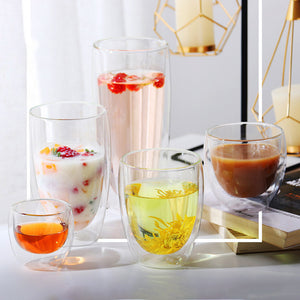 A modern rounded form re-interprets the unique glass-in-glass technology. To create a vacuum layer of thermal insulation, two light-weight layers of glass are blown together. Without burning your hands, these glasses keep hot beverages hot, while ice-cold drinks remain cool without the inconvenience of condensation. Owing to the handmade nature of these bottles, there will be slight variations.