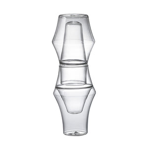 Inside our sleek double-walled espresso cups, drinks appear to float, a pleasant effect that serves a very practical purpose. An insulating layer of air is formed by the two seamless walls of borosilicate glass, so espresso shots remain hot and delicious, but the cup still feels cool to the touch. For daily use and casual entertainment, the durable glass is perfect.