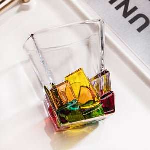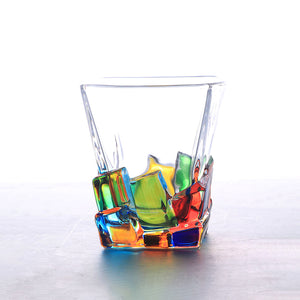 Our delicately glasses are made of hand-blown glass in a spectrum of colors. Talented artists blast molten solid-color glass into a stacking form, resulting in textured, tactile glasses. Stack many glasses in the same color for a matched bar cart, or collect one of each to keep track of who's drinking what.