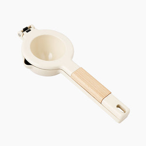 A clever dual layer system with substantial pressing mold pattern strength yields up to 20% more lemon or lime juice than standard models. This hand-juicer is made of durable diecast zinc alloy and beech wood and features a bowl that inverts the fruit and strains out practically all of the pulp and seeds, leaving only the wonderful, healthy juice.