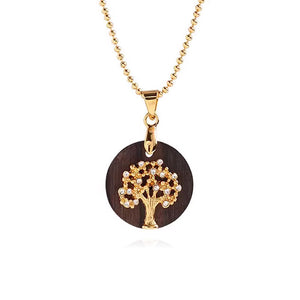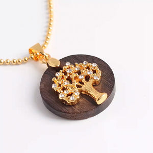 Adorn yourself with the luxurious Sumni Mori Tree Pendant, crafted from 18K gold fill and set on a midnight ebony blackwood background. This exquisite pendant features a unique tree of life design, making it a tasteful and elegant choice to complete any outfit.