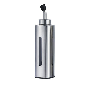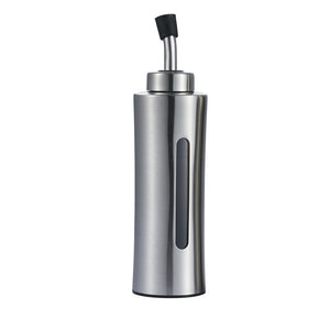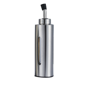 Topped with a stainless-steel pourer, this clear opened glass cruet is a modern in European kitchens. Keep it by the stove for cooking, or at the table for dressing salad greens or finishing foods with a dash of olive oil.