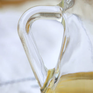 The cruet takes the clear geometry of body shapes to your kitchen counters or dining table, where you may serve your favorite tamari, infused vinegar, or finishing oil. The conical cruet dispenses oils and dressings through a short, slender spout that completes the body-chic design, which is topped with a natural cork that provides a warm contrast to the clean-lined glass.