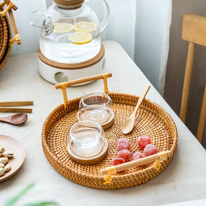 This natural rattan tray is handcrafted from 100 percent rattan in Indonesia, using the traditional ketak weaving process. The rod of a grass that grows wild in peat fields is known as ketak. It can be woven into beautiful but sturdy objects due to its long, thin, and flexible structure.