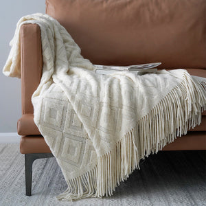 Our throw is woven of a lightweight acrylic blend that's easy to keep looking its best—yes, it's machine washable. It's a cloud-soft covering for daydreaming and cuddling up. To give it a gorgeous drape and casual flair, we added feathered fringe on two edges.
