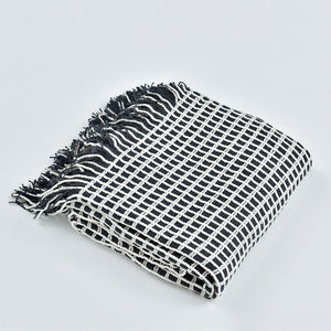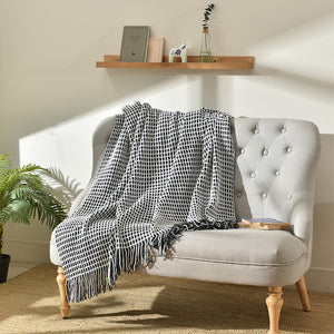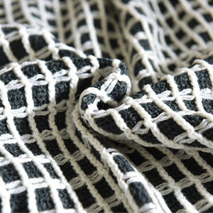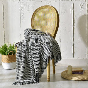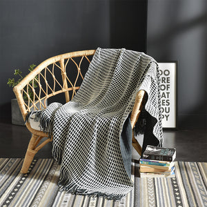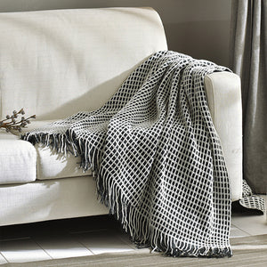 This fringed throw blanket designed by Jefferson adds contemporary texture to your living room. This soft knit throw boasts a traditional two-tone mesh design that goes with a range of decor types. This blanket is also made to resist shedding and unravelling in the washing machine.