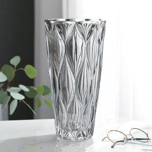 This fancy vase is a lovely crystalline glass vase that will brighten up your living room and add a little glitz to your floral arrangement. It's a stylish tall centerpiece or can be used as a floor vase because it's tall enough to make a statement even when placed in the corner of a room. It boasts a clean, contemporary style with light-reflecting incisions along the surface. This adds to the glitz and glam of fancy vase. Made of solid crystalline glass, it is extremely stable and long-lasting. There is no lead content in it.