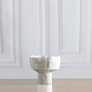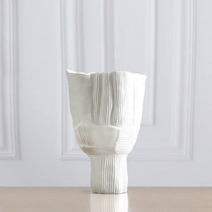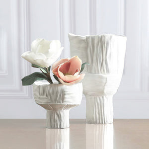 The ceramic glaze white vase with a floral inspired look adds a cute, simple touch to any room. Perfect as a gift, faux florals will look stunning in this vessel.