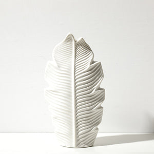 The white Musa Leaf-liked texture on this one-of-a-kind vase is loose and expressive. In order to create a unique arrangement of stripping results, each vase is handmade from ceramic and carved by hand.
