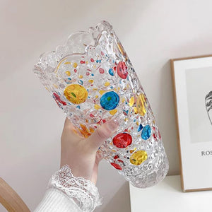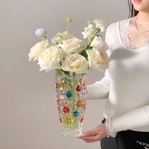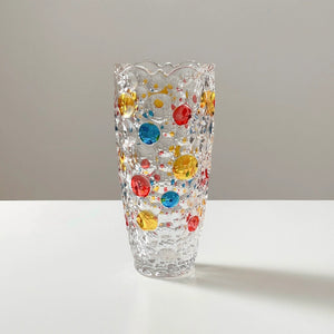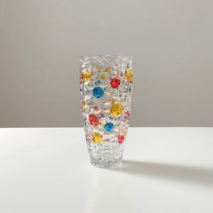 Our delicately vases are made of hand-blown glass in a spectrum of colors. Talented artists blast molten solid-color glass into a stacking form, resulting in textured, tactile jar.