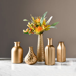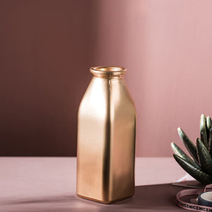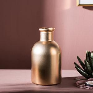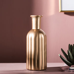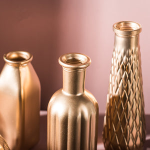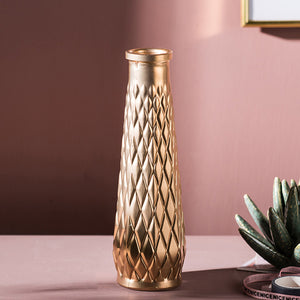The timeless allure of brass metal looked is celebrated by plain, contemporary vases. The vase is made of glass and has a distinctive, rustic texture and glows with a golden brass finish. Community or fill with dry botanicals or fake flowers with other Tanfield vases for a sculptural display.