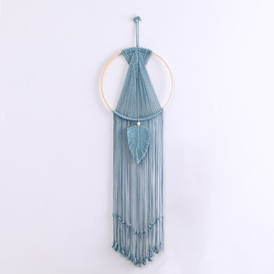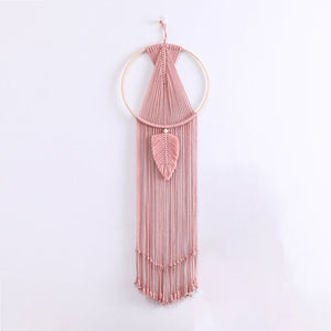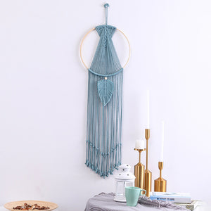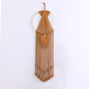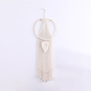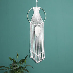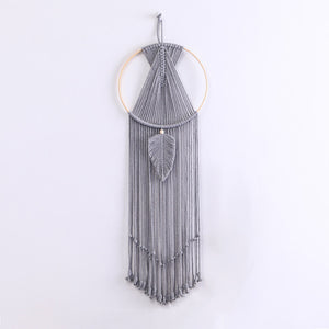With the macramé wall hanging, you can add a touch of bohemian to your gallery! These macramé wall hangings are made from natural cotton rope and have been weaved, twisted, and knotted into an intricate flag-shaped design with a mix of shapes and textures. All of the macramé hangings are well-made and can be hung on the wall using a rope wrapped around a natural bamboo dowel.