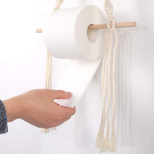 • This unique wooden Macramé wall paper towel hanger managed to combine practicality with elegance..