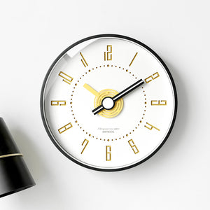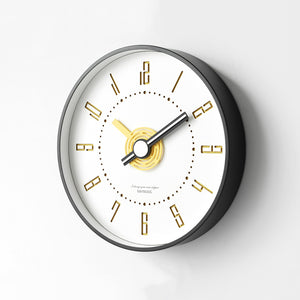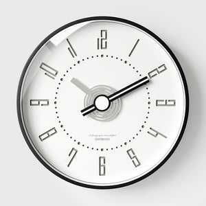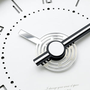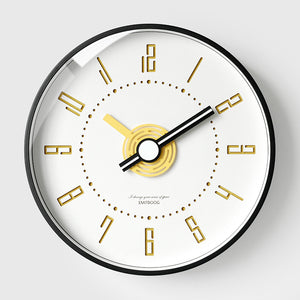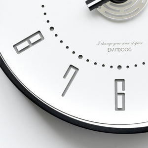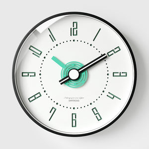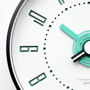 The wall clock is made to be a celestial minimalist clock, the white surface with the digital font of the Arabic numeral at the outermost ring of the clock, the seconds and minutes is clearly shown as minor and major dots. The clock is filled with a layer of highly transparent glass with the black piano metal material for the clock border. The wall clocks comes with 4 different acrylic color, silver, yellow, cornflower blue and aquamarine green.