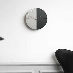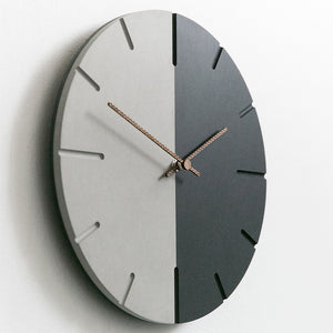 This is a 12 inches day and night Nordic moon minimalist wall clock, the clock body made by 2 clear half cut of gray and black environmental friendly forescolor MDF with 2 walnut wooden clock hands. The idea is telling the day and night in the cycle of half, half time for the day and another half for the night, like our life having high and low point, we may not know what is going on at the minute later, while what we know is keep moving.
