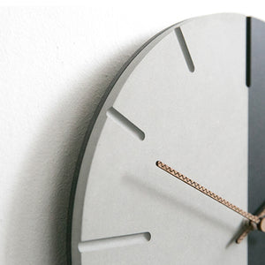 The wall clock is made to be a minimalist clock with the clean gray and black surface with the clear pattern lines as the hours. In order to become the the wall clock that govern the day and night as well as accompany its owner day and night in your sweet living room, office, restaurant or bedroom. It is made of forescolor MDF and walnut wooden materials for the clock face allows the clock to be heat resistant and anti-corrosion. This is a mute clock that allows its owner to enjoy the cozy, silent and clean environment.