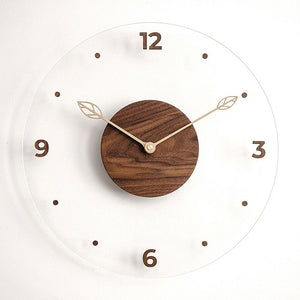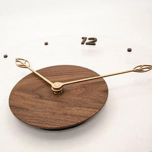 The clock face is composed of black walnut wood and transparent acrylic plate. To be more natural, the wood is carved with a high precision CNC, polished by hand, and waxed with a wood oil composition. The hands are formed of new leaves in the shape of needles, and the mix of natural raw wood and modern materials compliment each other to demonstrate the distinct modern style. The 12, 14 or 16 inches clear and basic design is appropriate for a variety of settings.