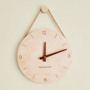 The Akkaria Hanging Wall Clock with hemp rope can bring a stylish touch to your home or business. This Scandinavian circular wall clock is made of solid wood and genuine rope. The clock comes with a hanging rope belt and wall knob, giving it the appearance of a minimalist wall clock. The rustic wood wall clock is ideal for people searching for a unique party present for their loved ones. This wall clock may also be used as minimalist wall art or wall décor in your home or office. This wooden circular clock is an excellent choice for a decoration in your living room, kitchen, porch, workplace, foyer, or children's room.