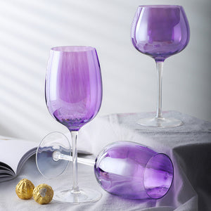 • These elegant glasses are handcrafted and mouth-blown with a sleek, contemporary shape and a rich infusion of amethyst that brightens any gathering with stylish color.
