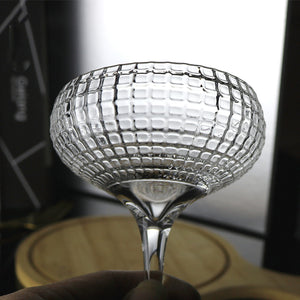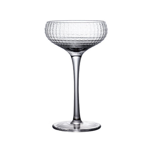 The glass was designed for individuals who appreciate tactile design and contains precisely ribbed lines that produce a panelled look. This three-dimensional design elegantly reflects light, creating a one-of-a-kind optical show over the surface of your table or bar. These coupe glasses are a one-of-a-kind complement to your tablescape, with high sides reminiscent of old stemware and cocktail style. Pour a traditional drink or some bubbly, or construct a sophisticated and exquisite dessert and appetiser display. This is something to celebrate!