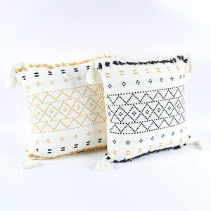 A pillow in black, yellow, and natural cotton have just the right amount of Nordic flair. This collection was handcrafted by professional artisans and features the region's signature boldly angular geometry. Combine the pillows with our other globally influenced pillows in soft tones.