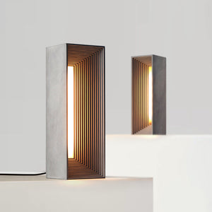 Teal table lamp creates a spectacular illusion of portal light that seemingly have no end. The internal LED light glowing as though it’s an endless tunnel that you could reach into another space.