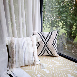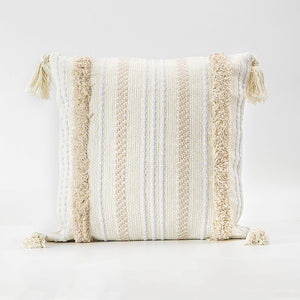 These pillows are handwoven by professional artisans and feature tempting fringe and a number of touchable knits, knots, and stitches. The neutral pillows are richly textured, thanks to the intricately woven comfort of Moroccan wedding blankets.